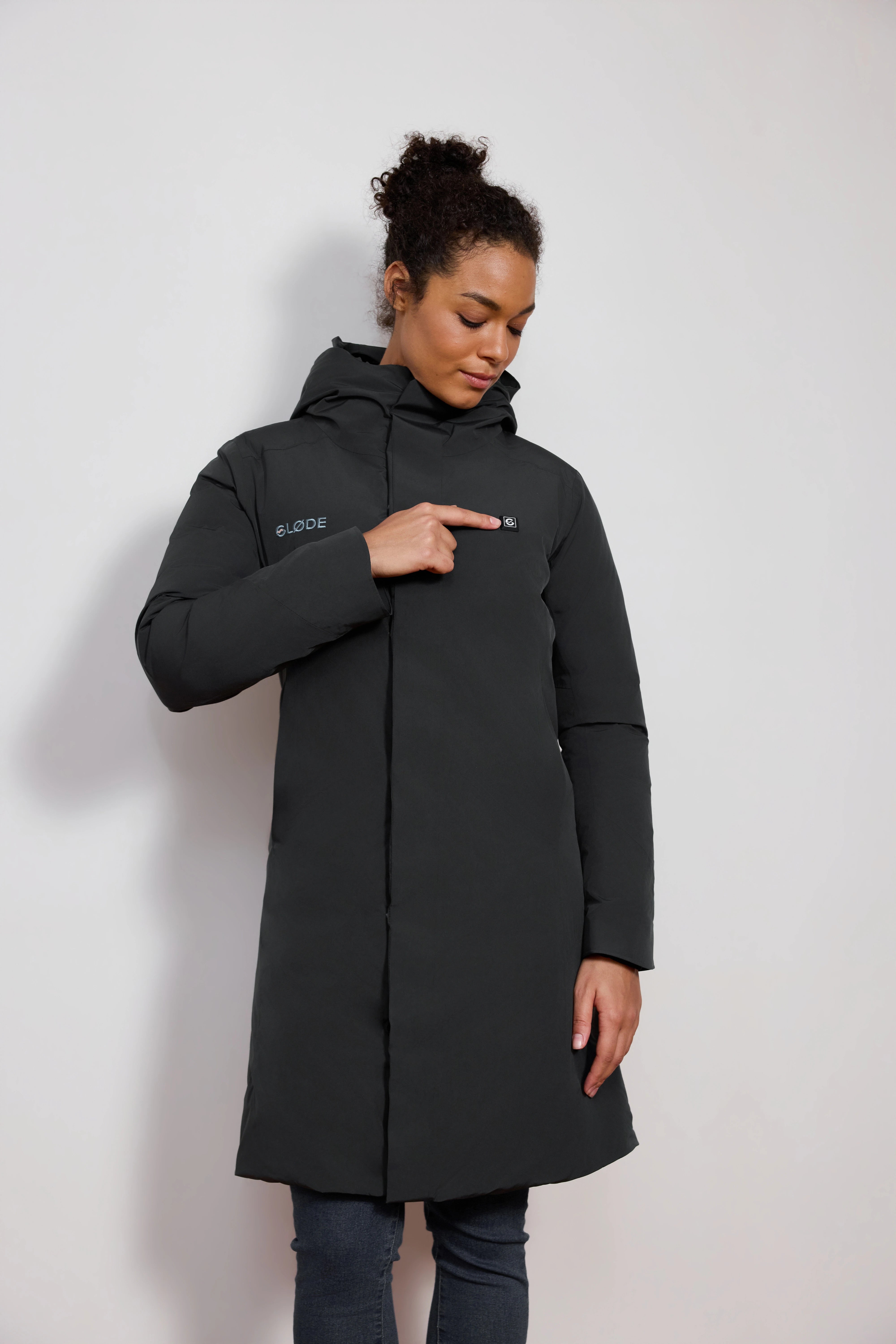 Denna parka är utrustad med avancerade PRO-värmeelement, vilket gör den till den varmaste och bekvämaste jackan i Gløde-serien.