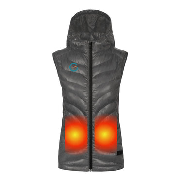 Damernas kroppsvärmare med uppvärmning innehåller fem värmeelement. Två på magen nära fickorna. Två värmeelement värmer bak i kroppens värmare och värmer ryggen. Det finns också ett värmeelement som ingår i kragen. Detta håller även din nacke skön och varm vilket garanterar en extraordinärt bekväm känsla.